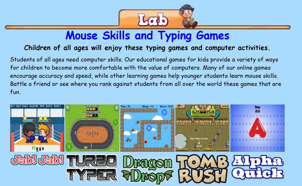 Typing & Tech: Typing races, keyboarding skills, mouse contro